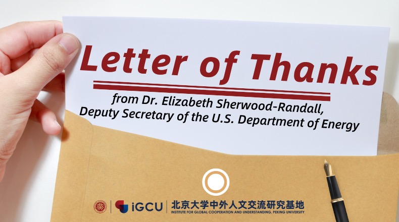 Dr. Elizabeth Sherwood-Randall, Deputy Secretary of the U.S. Department of Energy, wrote a letter of thanks to John Holden, Deputy Dean of the Yenching Academy of Peking University. Dr. Elizabeth Sherwood-Randall showed gratitude to Peking University for arranging close discussions and exchanges between teachers and students of relevant departments of Peking University including Yenching stude...