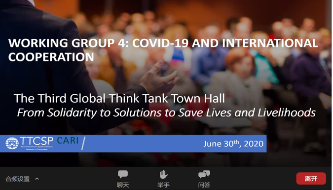 On June 30th and July 6th to 10th, 2020, the Third Online Seminar and Working Group Meetings of the Global Town Hall Meeting were successfully held. The Meeting was sponsored by the Think Tanks and Civil Societies Program (TTCSP) of the University of Pennsylvania, an evaluation institute of world-famous think tanks. As one of the co-sponsored think tanks and a member of the Think Tank Planning ...