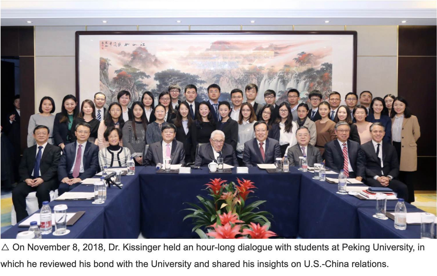 Dr. Kissinger visited PKU seven times in a span of over 22 years and had engaged in different types of communications with students and scholars from PKU. “I enjoy coming to PKU. The students are lovely and dedicated, making efforts for the fulfillment of their life,” said Dr. Kissinger.