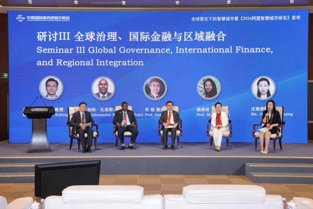 Prof. Xufeng Zhu, Dean of School of Public Policy & Management at Tsinghua University and Director of Center for Science & Technology Development and Governance, Tsinghua University, moderated the seminar themed on “Global Governance, International Finance and Regional Integration”. In the Q&A session, Mr. Ashraf Momtaz from the Ministry of International Cooperation of Egypt expressed worries about the massive investment or financing needs for smart city construction. Ms. Jianrong Zhuang, Director of Economic Affairs at the Beijing Municipal Commerce Bureau, held that large infrastructure projects should be led by the government, and efficiency-first projects should let market players be the main investors, for which investments may come from government funds or private funds both at home and abroad. H.E. Babagana Wakil, Charge d’Affaires a.i., Embassy of Nigeria in China, and Prof. Meijun Qian, Chief Fellow of Research Institute at People's Bank of Chinaand Distinguished Visiting Professor of School of Public Policy & Management at Tsinghua University, held that we should still attach importance to the important role of the International Monetary Fund (IMF), the UN and other major international organizations in financial governance for global development and regional integration. However, Prof. Geng Xiao, Director of Institute of Policy and Practice, Shenzhen Finance Institute and Member of the Expert Group of the Chief Executive’s Policy Unit of the Hong Kong Special Administrative Region Government, argued that in the era of digital economy, it is necessary to fully leverage the power of market and regional integration to develop smart cities. Moreover, H.E. Babagana Wakil said that smart city development should be more inclusive, benefit more people, and lift more people from poverty. Prof. Xufeng Zhu held that the digital divide is not a negative impact of smart city development, but a result of insufficient smart city development.