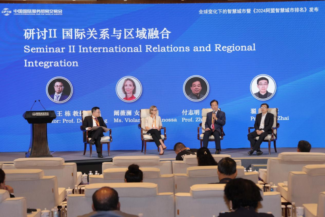 Athematicforum themed “Building Smart City in a Changing World”, as part of the 2024 China International Fair for Trade in Services (CIFTIS), was held at China National Convention Center in Beijing on September 16, 2024, at which the 2024 League of Arab States (LAS) Smart City Ranking was released. The forum was co-hosted by the Institute for Global Cooperation and Understanding(iGCU) at Peking University and the Institute for Urban Internationalization Studies at Zhejiang International Studies University, under the support of Harbor Overseas, the Center for Science & Technology Development and Governance of Tsinghua University, and the Shenzhen Finance Institute. More than 100 government officials, experts, media representatives and other distinguished guests from 30 countries, regions and international organizations attended the event. Foreign guests accounted for approximately 60% of all attendees, indicating the forum’s global influence and demonstrating the participants’ high professionalism.