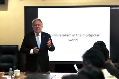 The lecture was hosted by Wang Dong, Professor, School of International Studies; Deputy Director of the Office for Humanities and Social Sciences, and Executive Director of the iGCU, Peking University. Attending the event were Zhang Yongle, Deputy Director of the Office for Humanities and Social Sciences and Tenured Associate Professor, Peking University School of Law; Professors Zha Daojiong and Ding Dou, School of International Studies, Peking University; Chen Shaofeng, Tenured Associate Professor, School of International Studies, Peking University; Lai Huaxia, Assistant Professor, School of International Studies, Peking University; and more than ten master’s and doctoral students from Peking University.