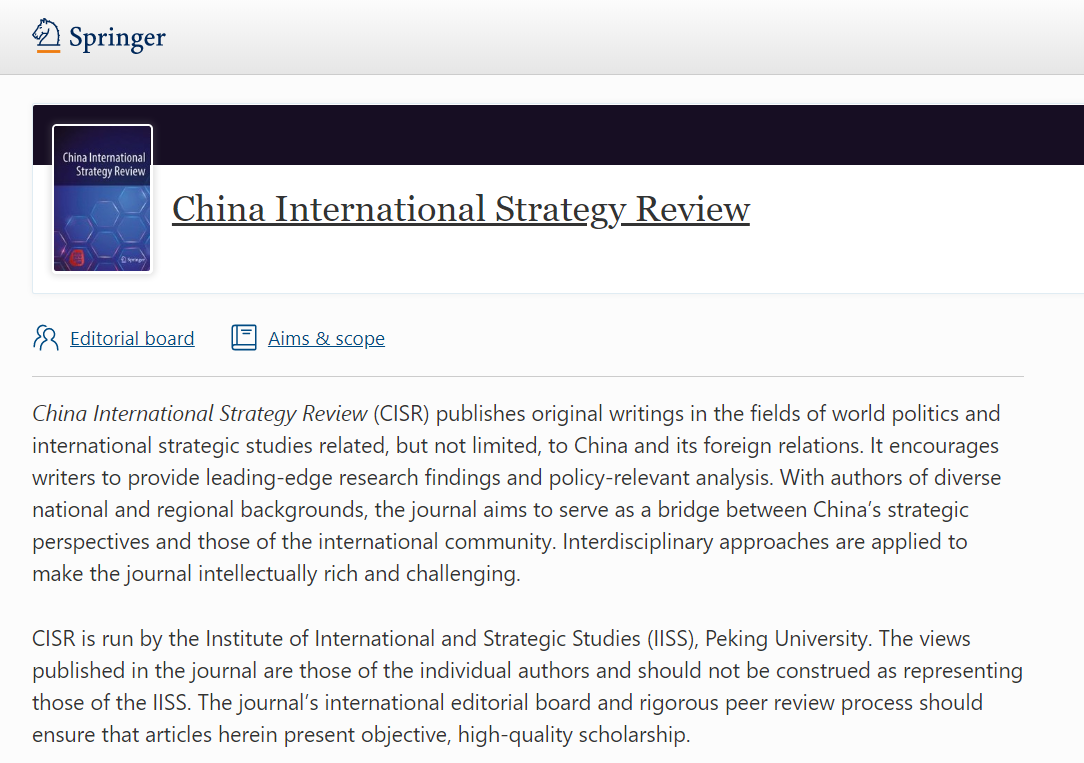 China International Strategy Review, 1, Dec 2019, P 195-204
