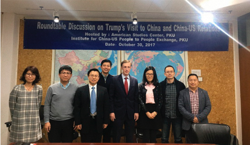On December 7, 2017, a round table discussion on the subject of “Trump’s Foreign Policy and Sino-U.S. Relations” was co-hosted by the American Studies Center, Peking University and the Institute For China-U.S. People-to-People Exchange, Peking University in Room C104 of School of International Studies, Peking University.