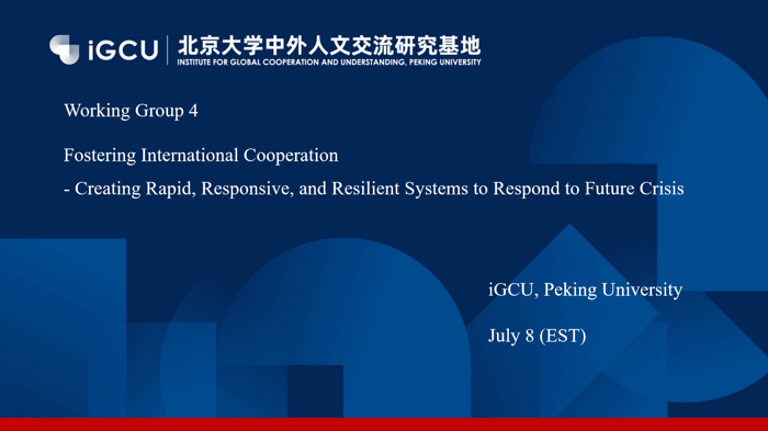 On June 30th and July 6th to 10th, 2020, the Third Online Seminar and Working Group Meetings of the Global Town Hall Meeting were successfully held. The Meeting was sponsored by the Think Tanks and Civil Societies Program (TTCSP) of the University of Pennsylvania, an evaluation institute of world-famous think tanks. As one of the co-sponsored think tanks and a member of the Think Tank Planning Committee, the Institute for Global Cooperation and Understanding (iGCU) of Peking University has been invited to participate in the seminar for three consecutive years, holding continuous discussions with think tank experts and scholars across all continents on relevant issues following the COVID-19 outbreak. As a member of Working Group IV, the iGCU shared suggestions on how to strengthen international cooperation in response to future common crises.