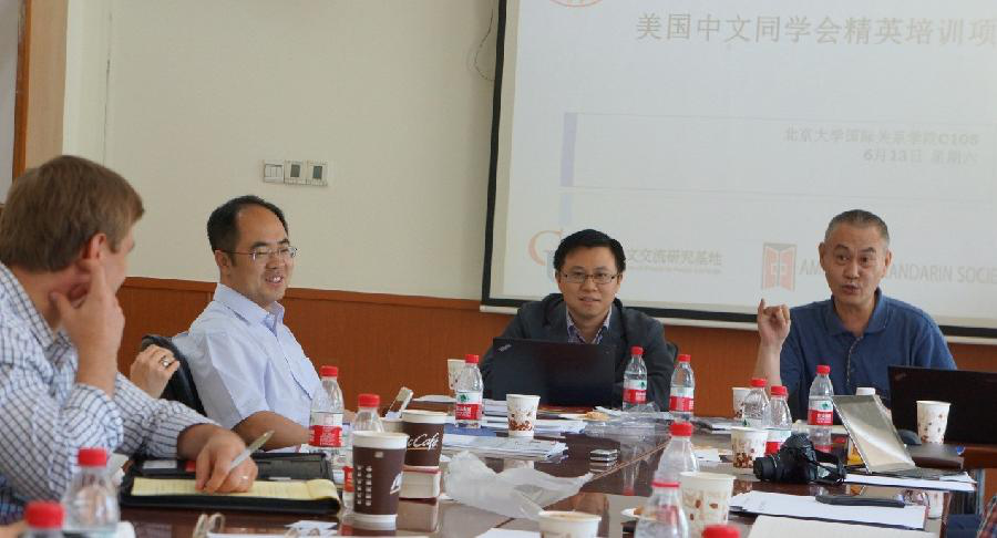 Wang Dong, Executive Director of theInstitute for Global Cooperation and Understanding(iGCU), Professor of the School of International Studies, Peking University, extended a warm welcome to members of the American Mandarin Society Leadership Elite Training Program.Pan Wei, Professor of the School of International Studies, Peking University, Zhao Lei, Professor of the International Institute for Strategic Studies of the Party School of the Central Committee of CPC, and Dr. Wang Wei of the Marxist Theory Teaching and Research Department of the Party School of the Central Committee of CPC, respectively gave detailed introductions of the “Belt and Road Initiative”, “Connotations of socialism with Chinese characteristics” and “Lack of mainstream ideology in China today” under such themes as “The development of Chinese ideology”, “The Belt and Road Initiative and the new normal of China’s economy” and “Socialism with Chinese characteristics in the era of globalization”.The in-depth analyses and interpretations of these three scholars aroused strong interest and discussion among American members on these issues.