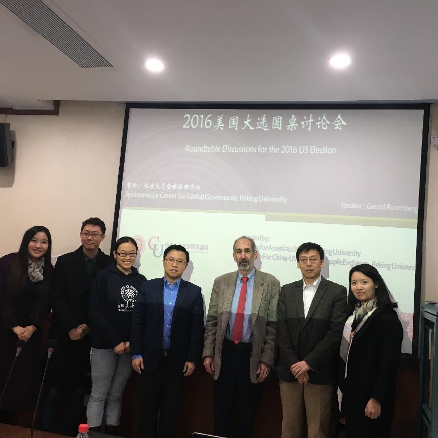 On the morning of November 5, Gerald N. Rosenberg, an Associate Professor of the Department of Political Science at the University of Chicago Law School, held a round-table seminar with teachers and students at the School of International Studies of Peking University on the fourth day of the countdown to the 2016 American Presidential Election. The event was jointly organised by the Institute f...