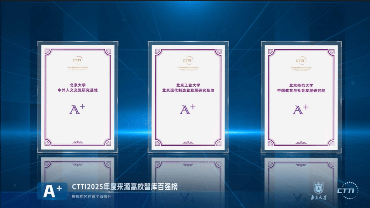 The Institute for Global Cooperation and Understanding of Peking University (iGCU) was selected for the CTTI 2025 Top 100 University Think Tanks and received an A+ rating. In addition, iGCU’s submission “Smart City Forum” received the 2025 CTTI Think Tank Construction Best Case “Benchmark Case” Award. Its “2025 BRICS Smart City Ranking” won the Grand Prize for the 2025 CTTI Outstanding Think Tank Achievements, and its “2025 Global Space Infrastructure Review: Space Infrastructure Evaluation Oriented Toward Interstellar Connectivity” received the First Prize for the 2025 CTTI Outstanding Think Tank Achievements. iGCU has now consecutively received the CTTI Benchmark Case Award and Grand Prize for Outstanding Think Tank Achievements for four years.