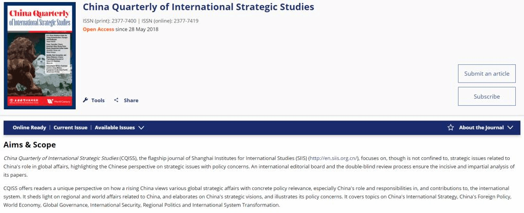 China Quarterly of International Strategic Studies, Vol. 01, No. 01, 2015, pp. 1-17