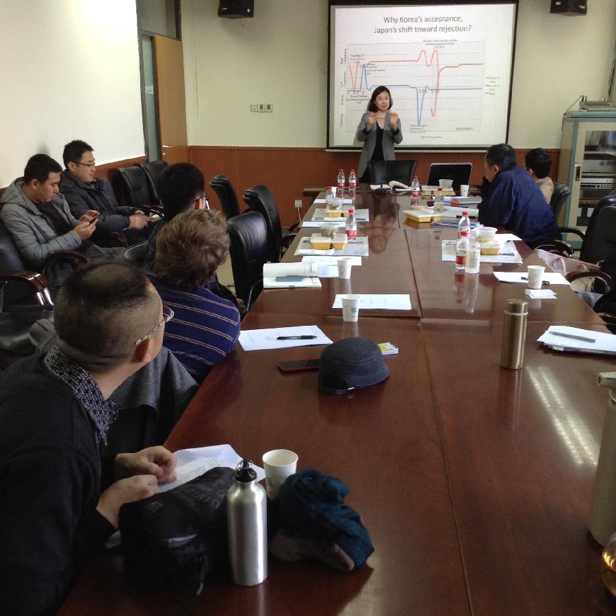 On December 19th, 2014, Dr. Ji-Young Lee, Assistant Professor of American University delivered a speech themed "Viewing the Rise of China in the East Asia from a Historical Perspective" at the luncheon of School of International Studies. Associate Professor Gui Yongtao of School of International Studies presided over the seminar. By analyzing the tributary system centered on China in ancient times, Dr. Lee explored the significance of historical experience in understanding China' s rise today. Based on that, she questioned two popular views on the rise of China. The first one worries that China may learn from its past tributary system and reestablish its regional domination, while the other believes that Japan and South Korea should seek security cooperation to fight against China' s rise. Prof. Zhang Zhirong, Dr. Xiang Zuotao and some master and doctoral students and English program students participated in the seminar.In the Q&A session, the participating teachers and students had heated discussions and interactions with Dr. Lee.