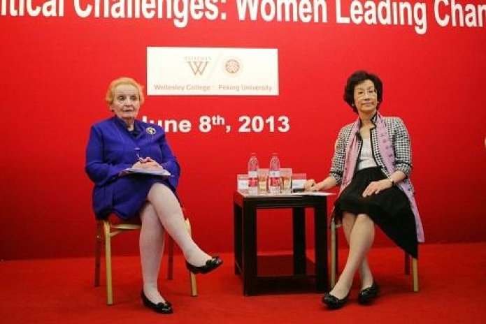 On the afternoon of June 8th, 2013, co-sponsored by Peking University and Wellesley College, and themed “Global Political Challenge: Women Leading Change”, the Women’s Leadership Conference was held at the Tan Siu Lin Centre for International Studies of Peking University. Professor Yuan Ming, Director of the Centre for American Studies of Peking University and Executive Deputy Director of the Institute of International and Strategic Studies, Peking University, was invited to attend the conference, where she had a conversation with Madeleine Albright, former United States Secretary of State.