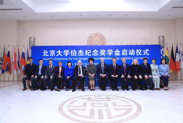 Entrusted by Susan Berger, widow of the late Honorable Samuel Berger, former US National Security Advisor to the President, Julia Chang Bloch, President of the US-China Education Trust and former US Ambassador to Nepal, proposed the establishment of the Berger Memorial Fellowship to empower young Chinese scholars to deepen the scope their research into America and promote China-US academic exchanges as well as cultural and people-to-people exchanges. Following a review, the Peking University Education Foundation (USA) approved a donation to establish the Peking University School of International Studies Berger Memorial Fellowship. Julia Chang Bloch came to China specially to attend the launching ceremony with a letter written by Susan Berger. Also present at the ceremony were Qiu Yuanping, former Director of the Overseas Chinese Affairs Office of the State Council of China, Terry Branstad, the US Ambassador to China, Carlos Gutierrez, former US Secretary of Commerce and Chair of Albright Stonebridge Group, Nicholas Platt, former US Ambassador to Pakistan and former President of the Asia Society, Wang Bo, Counselor of the Department of American Affairs of the Ministry of Foreign Affairs, and Lynn Zhao, President of Peking university Education Foundation (USA).